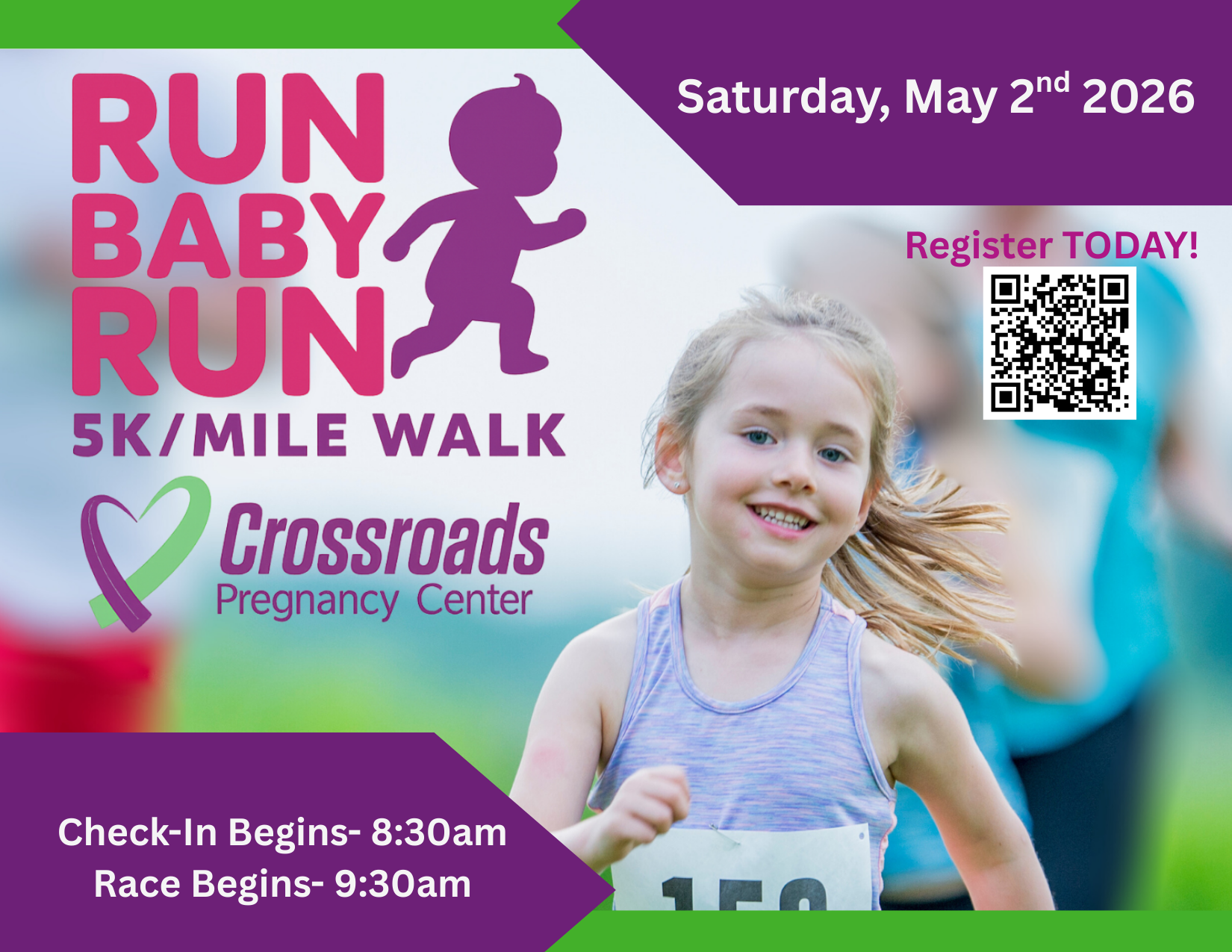 Join us on Saturday, May 2nd as we walk/run for LIFE during our annual Run Baby Run!! Register before April 12th and receive a FREE T-SHIRT!! Event takes places at the McConnellstown Nazarene Church 5851 Newtown Ave. Huntingdon, PA 16652. Participants register to run/walk and THEN can begin fundraising!! Ask family/friends/coworkers to support you in your run/walk! Prizes will be given to top finishers AND top fundraisers! Register below!